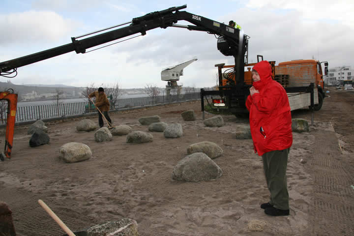 Aufbau des Haiku-Gartens auf dem Gelände der Landesgartenschau (13.03.2008)